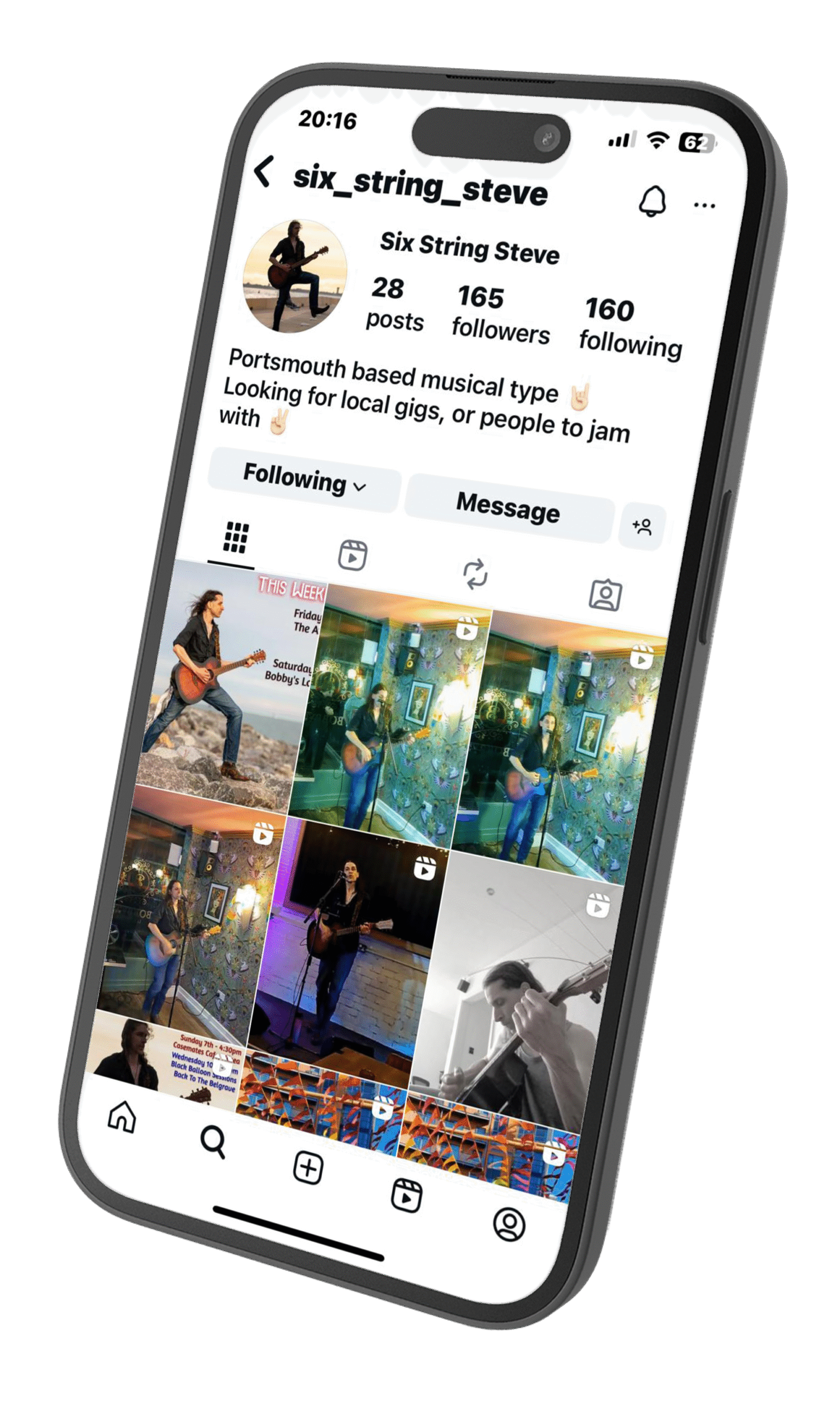 As much as I love bringing the frontman energy to solo performance, I am flexible and versatile, and more than happy to calm things down to suit the environment I am playing in. I also love to interact with an audience, but again, the same applies, and I can provide a chill background vibe to a more relaxed event.